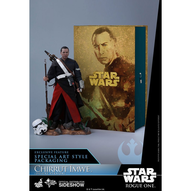 In celebration of the famed Hong Kong actor and martial artist Donnie Yen starring as the spiritual warrior Chirrut, Hot Toys is excited to present a special Deluxe version of the sixth scale Chirrut Îmwe only available in selected markets. This extremely life-like collectible figure is specially crafted based on the character's appearance in the film, featuring a newly developed head sculpt, a meticulously tailored costume, detailed weapons, and accessories including a staff and a crossbow.