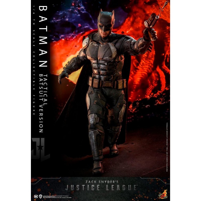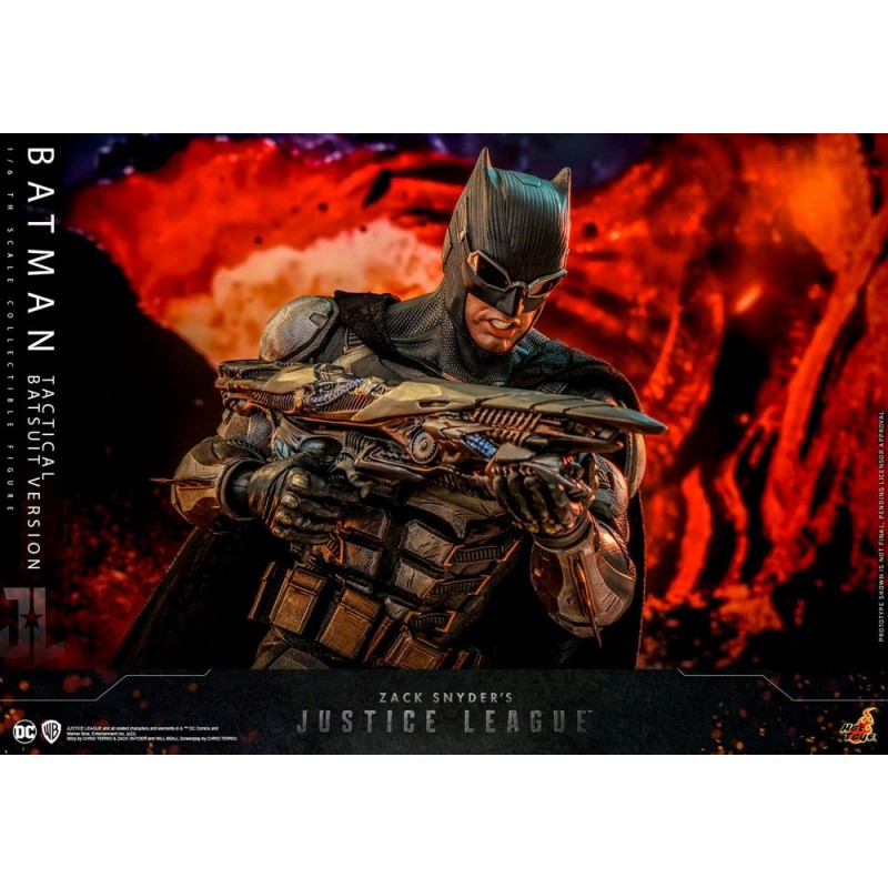 Meticulously crafted based on the image of Ben Affleck as Batman/ Bruce Wayne in Zack Snyder's Justice League, the figure showcases the Tactical Batsuit in gorgeous detail with updated paint applications. The sixth scale Batman figure features a cowled head sculpt with interchangeable eye pieces and lower faces capturing Ben Affleck's facial expressions, interchangeable goggles, a specialized body portraying Batman's muscular physique, finely tailored Tactical Batsuit textured with elements of battle-damage, a highly-accurate Parademon gun, Batarangs, grapple guns and multiple Bat gadgets. The figure also comes with a Paredemon diorama base tinged with painted lava and weathering details.