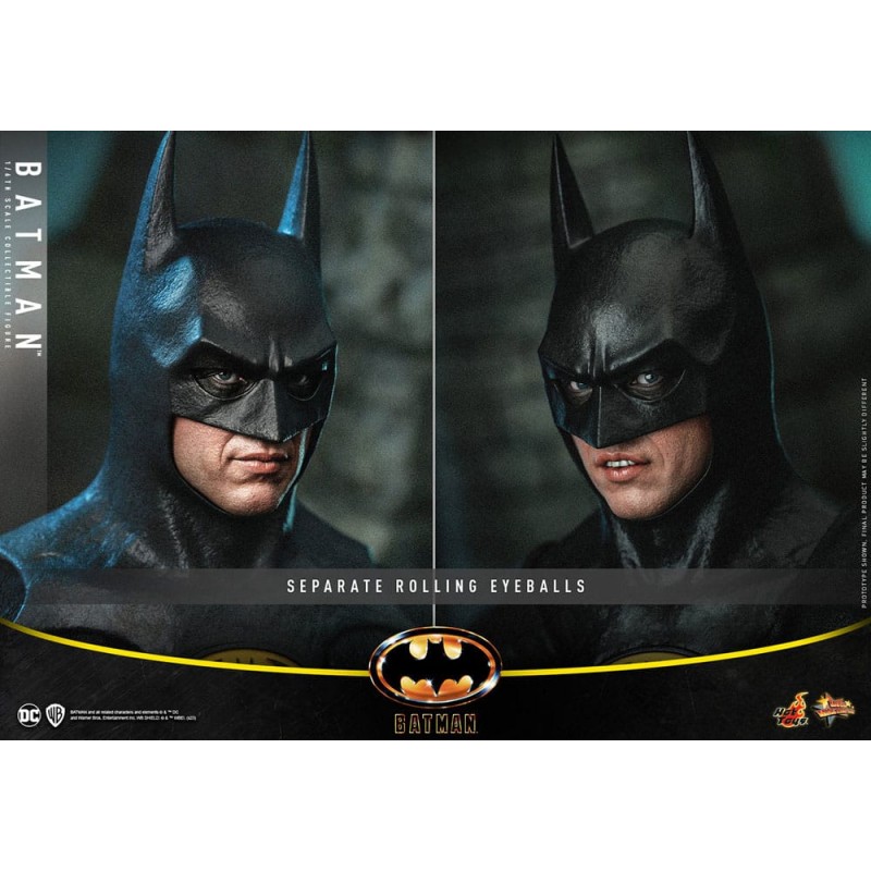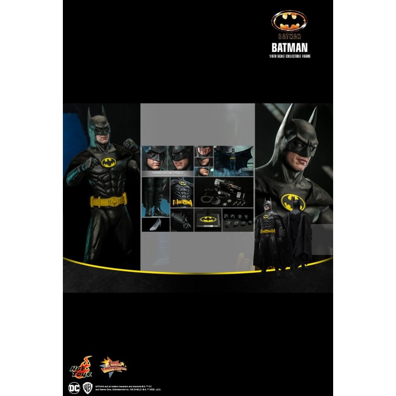Esta figura a escala 1/6, sumamente detallada y recreada fielmente la notable apariencia de Micheal Keaton como Batman en la película, presenta una cabeza de Batman recientemente desarrollada con globos oculares giratorios separados y caras inferiores intercambiables; un cuerpo especializado que resalta la forma muscular de Batman; el Battraje recientemente diseñado para imitar la apariencia del material; dispositivos únicos de Batman que incluyen una pistola de agarre, un guantelete con lanzador de cuerdas, un batarang con cuerda, ruedas ninja, cápsulas de humo; también accesorios que incluyen un zapato de tacón blanco, control remoto del Batmóvil, temporizador de bombas, equipo de perforación y una base de exhibición.